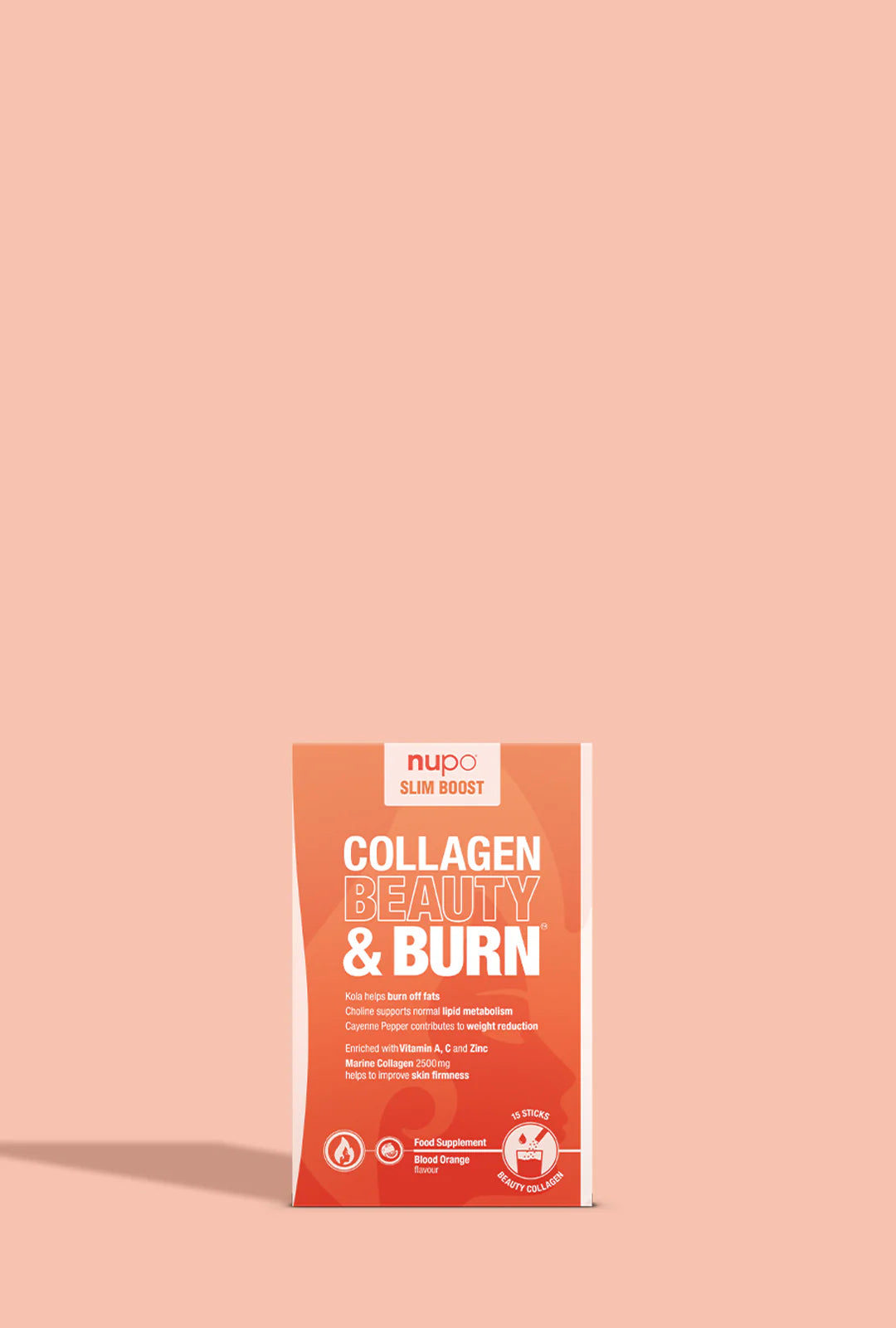 Slim Boost Collagen Beauty & Burn* vám pomáha spaľovať tuk s obsahom rastlinných výťažkov, ako je Kola, ktorá pomáha spaľovať tuky – doplnená 2500 mg kolagénu z morských zdrojov, špeciálne zameraných na pevnosť vašej pokožky. Na zvýšenie účinku Collagen Beauty & Burn vám prospeje aj kajenské korenie a guarana, ktoré obe prispievajú k chudnutiu.
